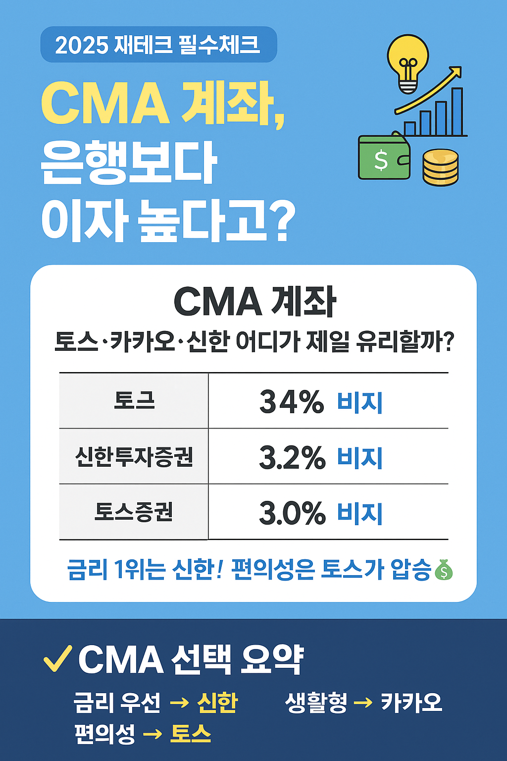 CMA 계좌 이자율 비교 2025|토스 vs 카카오 vs 신한, 어디가 제일 유리할까?