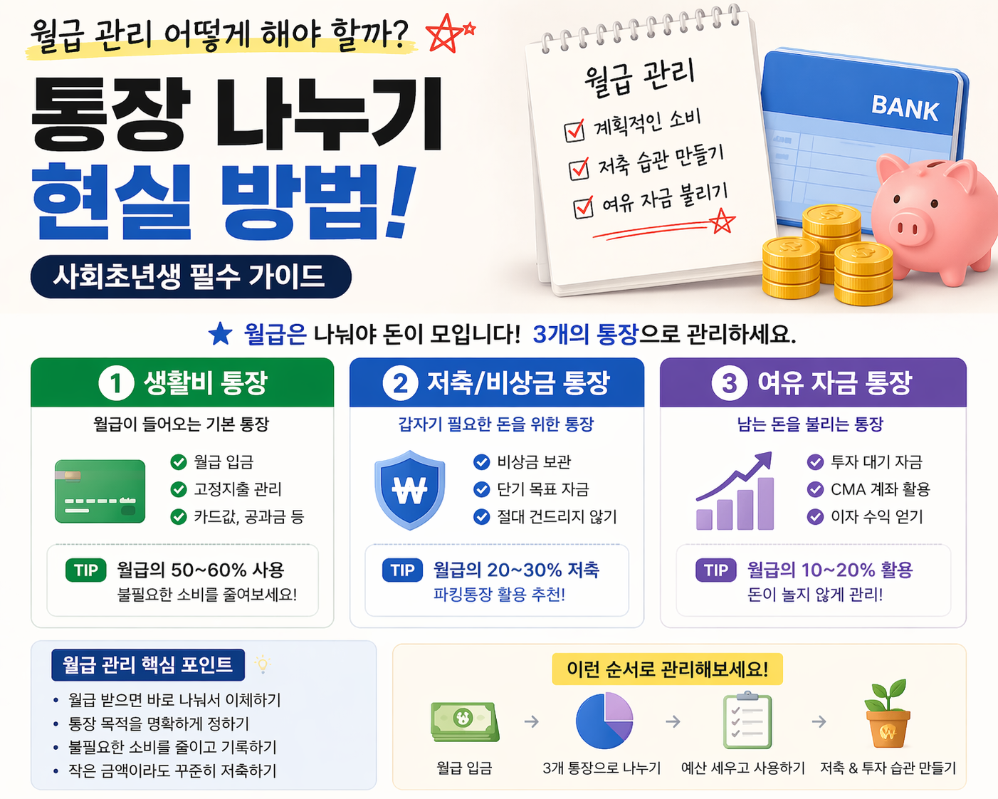 월급 관리 어떻게 해야 할까? 통장 나누기 현실 방법 (사회초년생 필수)