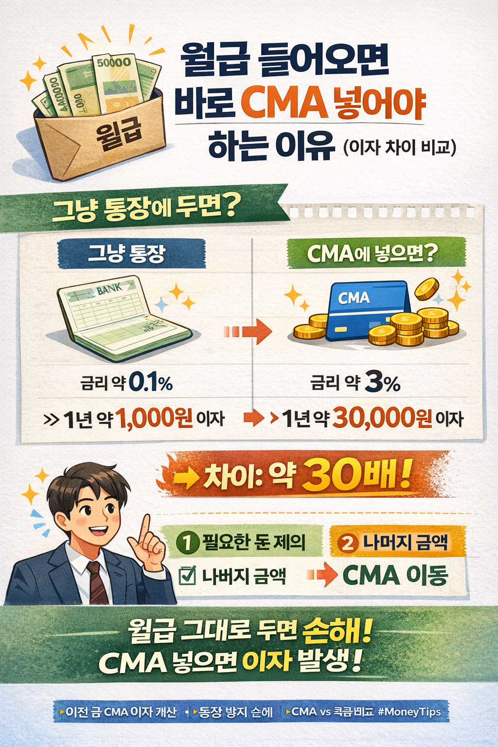 월급 들어오면 바로 CMA 넣어야 하는 이유 (이자 차이 비교)