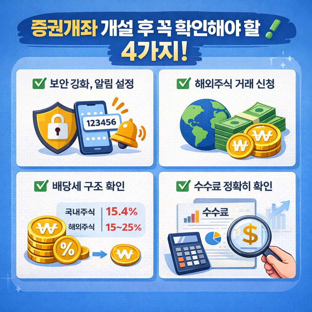 계좌만 개설해두고 기본 설정을 하지 않으면 수수료 손해, 세금 착오, 투자 실수로 이어질 수 있습니다.