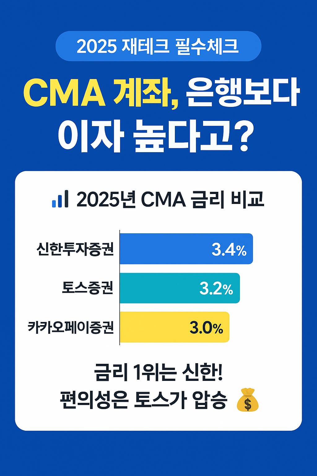 CMA 계좌 이자율 비교 2025|토스 vs 카카오 vs 신한, 어디가 제일 유리할까?