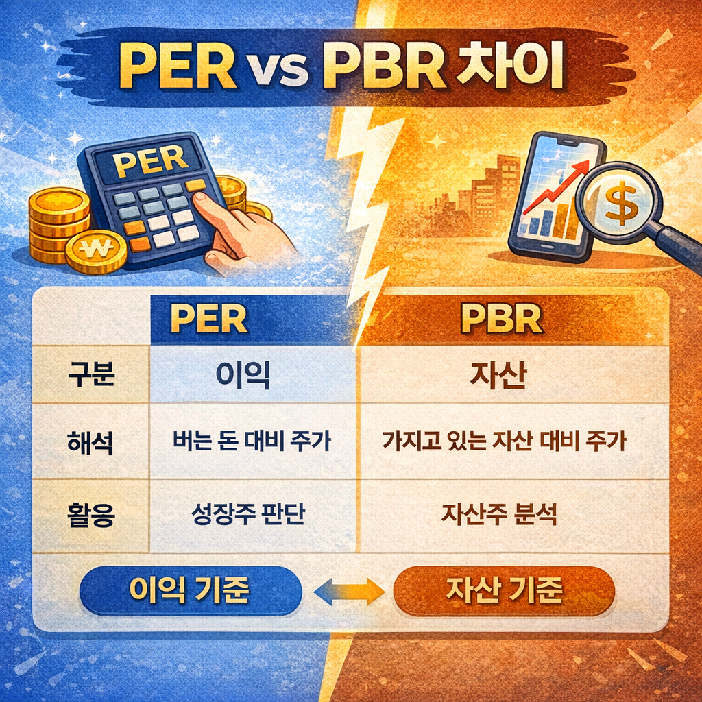 3️⃣ PER vs PBR 차이 한눈에 정리